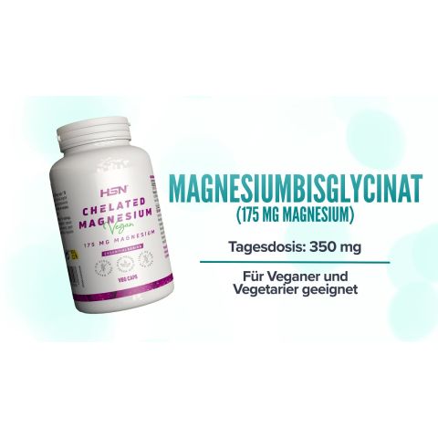 100 % Magnesiumbisglycinat in pflanzlichen Kapseln. Tagesdosis von 350 mg. Dieses Produkt ist für Veganer und Vegetarier geeignet.
