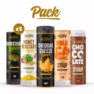 Hast du schon unsere Saucen und Sirupe probiert? Wenn du ein Fan unseres Saucen- und Sirup-Pakets warst, hast du Glück, denn unser neues HSN Saucen- und Sirup-Probierpaket bietet dir 9 Saucen (Döner, Joghurt, Senf, Red Hot Chili, Soja, Honig-Senf, Chimichurri, Barbecue und Ketchup) und 6 Sirupe an (Geschmacksrichtungen: Schokolade, Karamell, Heidelbeere, Schokolade-Orange, Schokolade-Haselnuss, Dulce de leche).