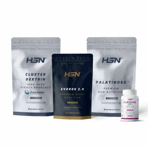 Dieses Pack kombiniert verschiedene Nahrungsergänzungsmittel: Kohlenhydrate für eine effektive Energiezufuhr sowie ein Produkt, das normalerweise vor dem Training eingenommen wird. Da das Ziel diesmal darin besteht, während des Trainings oder Wettkampfs ein konstantes Tempo zu halten, empfehlen wir, es während der Belastung einzunehmen. So wird das Gefühl körperlicher und mentaler Erschöpfung reduziert, du bekommst mehr Energie, die Laktatbildung wird verzögert und deine Explosivität gesteigert.