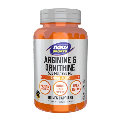 L-Arginin + L-Ornitin 500 mg/250 mg von Now Foods ist ein Nahrungsergänzungsmittel in Kapseln auf Basis von L-Arginin und L-Ornitin.