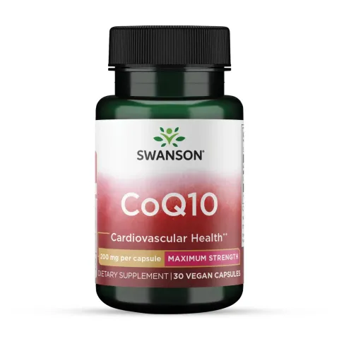 Coenzym Q10 200 mg von Swanson ist ein Nahrungsergänzungsmittel in pflanzlichen Kapseln auf Basis von Coenzym Q10.