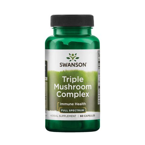 Full Spectrum® Triple Pilzkomplex von Swanson ist ein Nahrungsergänzungsmittel auf Basis eines Komplexes aus drei Pilzen (Maitake, Reishi und Shiitake) in Kapseln.
