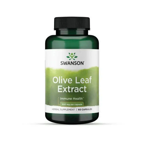 Olivenblattextrakt 500 mg von Swanson ist ein Nahrungsergänzungsmittel aus standardisierten Olivenblättern mit 20 % Oleuropein in Kapseln.