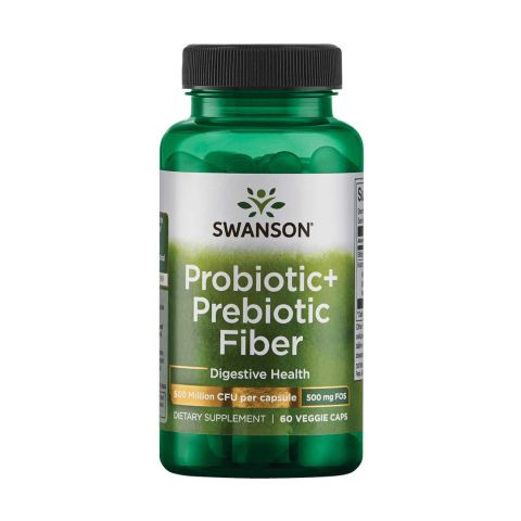 Probiotic + Prebiotic fiber 500 Million CFU von Swanson ist ein Nahrungsergänzungsmittel in pflanzlichen Kapseln, das auf einem Bakterienferment und kurzkettigen Fructooligosacchariden basiert.